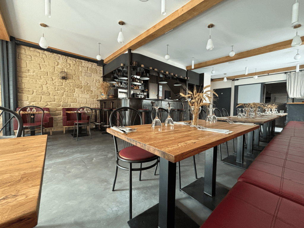 L’âme du restaurant : un espace chaleureux aux accents traditionnels ukrainiens, idéal pour un repas convivial. Cette salle s’ouvre directement sur la terrasse, créant une belle harmonie entre intérieur et extérieur.